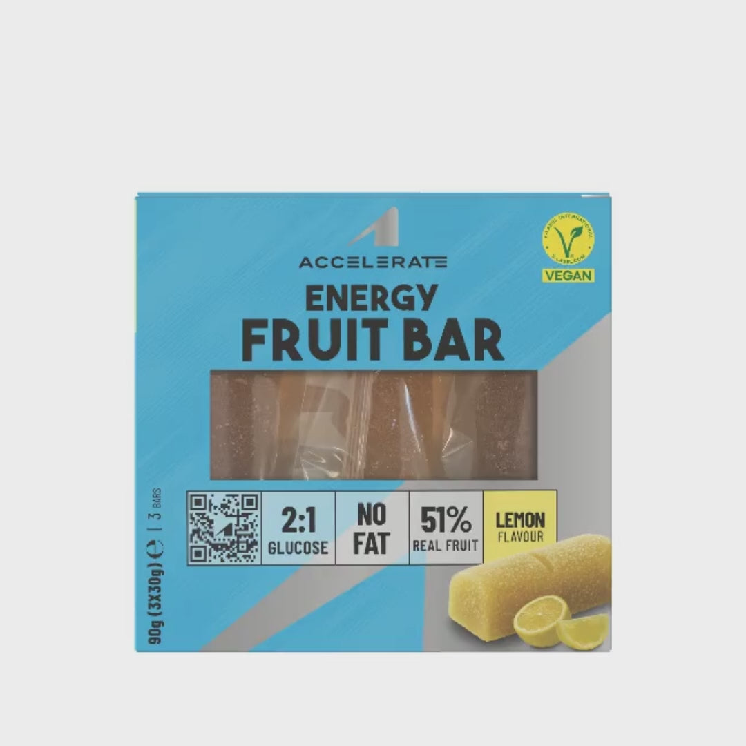 Geef je prestaties een krachtige en natuurlijke boost met de Accelerate Fruit Bars. Deze reep is speciaal ontwikkeld om je snel en effectief van brandstof te voorzien, precies wanneer je het nodig hebt. Dankzij de wetenschappelijke 2:1 glucose-fructose verhouding wordt de energie optimaal door je lichaam opgenomen voor maximale prestaties. Geniet van de pure en verfrissende citroensmaak, want de reep bestaat voor maar liefst 51% uit echt fruit.